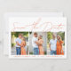 Viruset "Whimsical Verona sunset orange script" "calligraphy three fotocollage" är "Save the Date Card" (Spara datumkortet). Meddela dina kommande påstötningar med det här mycket designade Spara datumkortet, som innehåller en kalligrafi med varma orangar som lånar en luft av finare elegans. Kortets framsida är ett visuellt tilltalande 3-fotokollage som gör att du kan visa omhuldade stunder. När du lämnar kortet över kommer du att upptäcka ännu ett älskat foto, tillsammans med parets namn och en praktisk länk till deras bröllop webbplats, och se till att gästerna har alla nödvändiga uppgifter till sitt förfogande.