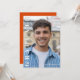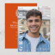 Celebrate your graduate with this bold and modern graduation photo card featuring a stylish vertical name layout and vibrant orange background. The front showcases a large senior portrait with the graduate’s name displayed vertically for a contemporary look, while the back includes space for graduation party details and celebration information.