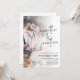 Modern inbjudan med överlagringsskript för förlovning. Minimal elegans, enkelt anpassa texten och ersätt exempelbilden med din egen.