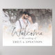 Modern överlagringsskript för foton Välkommen till bröllop. Minimal elegans med ditt foto längst upp bakom ett tonat överlagringslager med texten delvis överlagd på ditt foto längst ned. Huvudrubriken Välkommen är i en stilren handskriven stil och resten av texten kan du enkelt anpassa.