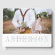 Inbjudan dina gäster i bröllop för att önskemål och visdom med den här chicen gäst bok, med din favoritbild eller ögonblicksbild av förlovning eller avslappnad på framsidan. Ditt efternamn visas under elegant grått-bokstäver med ett överlägg av ditt första datum namn och bröllop. Fyll i utfallet med ytterligare ett utfallsfoto på baksidan.