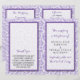 Den moderna paisley bröllop-samlingen är en fantastisk elegant som har ett fint paisleytryck i en mjuk lila och vit färg, som är perfekt för alla moderna bröllop firande. Dessa program kan vara personlig för ditt särskilda tillfälle och skulle göra perfekten till serviceorder för bröllop, möhippa, förlovningsfest, födelsedagsfest och många fler särskilda tillfällen. Lägg till anpassningsbarnas ordalydelse i den här designen genom att använda rutorna "Redigera den här designmallen" på objektets höger eller klicka på den blå "Anpassa den" om du vill ordna texten, ändra typsnitt och färg och även lägga till ytterligare information om bilder i den här designen. VISA MATCHNINGSOBJEKT FÖR DENNA SAMLING