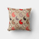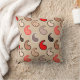 Dekorativ kudde i ett minimalistiskt, modernt paisley mönster, med prickar - skuggor av grått/grått, djupröda, koralla och kakaobönor, på en medelstor beige bakgrund