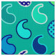 Fabric i ett minimalistiskt, modernt paisley mönster, med accent med prickar - turkos, akvé, koboltblått och kalkgrönt, på en mjuk turkos-/fribobakgrund