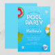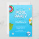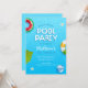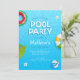 Det är en cool och modern sommar poolparty inbjudningskort. Bäst för sommarens födelsedagsfest inbjudan. Den har palmblad och blå simbassäng med rolig typografi. All text är lätt att anpassa.
