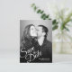 Anpassa den här snyggten med den vackra, moderna påminnelsen om bröllop spara datumet för fotovykortet designat med det vita skriptet typsnitt och texten "Vi gifta sig! Och skulle kärlek vilja att du sparar datumet (datum här) för att kunna på vår speciella dag! Formell inbjudan att följa." Ni kan också ändra denna formulering med ert eget ord. Den här vykortsdesignen är enkel och vacker och är perfekt för en lodrät-image. Ändra all information och mallbilden med din egen.