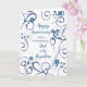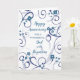 Lycklig bröllop-årskort för pappa och styvmamma med modernt blåa blommor och snurrande design, och hjärtligt versum.