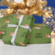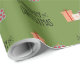 Denna papper för julomslutning är en fullt av festlig roligt! Med en god bakgrund på grönten är den sprinklad med ljust och glatt presenter som är insvept i rött och vitt, komplett med söta, små bröd. Mellan gåvorna dyker en lycklig-God jul upp, omgiven av lekfull liten snöflingor, som lägger till extra helgdag gnistra. Det är papper perfekt att ge presenter glädje och upphetsning, skapar dem känna extra speciellt under träd!