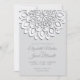Moderna, eleganta bröllopsinbjudningar med en vit papper kapning av mandala på svart med grått text.
