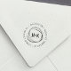 Ge en ren, modern blick på alla era inbjudningar och korrespondens med vår chic monogram returadress frimärke, med två initialer i centrum, omgivna av en abstrakt sfäriskt inslag och omgiven av ditt efternamn och din returadress.