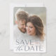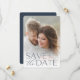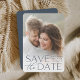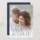 Anteckna att du i bröllop dejtade i oförglömligt stil med den här eleganten och att ett modernt foto sparar datumkorten, med ett lodrät eller ett foto som är orienterat efter fullt och som är orienterat efter porträtt med "spara datumet" överlagt med ett blått skiktsbrev i damm längs grund. Din placering i namn, bröllop och bröllop visas vid sidan av den moderna texten. Anpassa baksidan med ytterligare information, t.ex. webbplatsen bröllop.