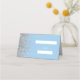Den här eleganten har det moderna bröllop bord-reserverade platskortet en silver faux glitter-utformning längs en kant på en pastellbakgrund med baby blue bakgrund. Kortets framsida innehåller vita rektanglar för gästernas namn och bordsnummer. Ord "bord" visas i ett vitt handskript med dekorationer före och efter. Anpassa kortets baksida med namn på briden och trippen i vitt handskriftsskript och bröllop-datumet nedan i sans serif-teckensnitt på baby blue bakgrund.