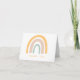 Ett modernt tackkort för ungar med en modern pastellregnbåge i senapsgult, rosa och grönt. "Tack" finns under i sans serif-teckensnitt för senap gult.