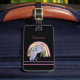 Öka resorna med den här enmajsrainbågsetiketten. Den här märkrn har en pastellbakgrund och en viskartad enmajsdesign och tillför lite magi till ditt bagage. Anpassa den med ditt namn om du vill få en personlig beröring.