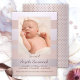 Flicka-fotoannonsering med ditt eget favoritfoto, inramat av mjuk pastellpersika och rosa rand, med ett pekfinger av grått och subtil glans.