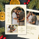 Elegant Gold Arch 3 Photo Peace Love and Joy Christmas Holiday Card. Celebrate the season in style with this elegant family photo Christmas card featuring a modern gold color arch-shaped photo frame. Personalize it with your favorite family photos, family name, and the year on neutral off white or cream beige background. The festive minimalist design is highlighted with elegant faux-gold color "Peace Love and Joy" calligraphy text, creating a warm and timeless look. The back showcases one photo and holiday message template with hand lettered name. A perfect holiday card to share with family and friends in winter holiday season.