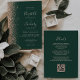 Modern Peach Glitter Emerald Grönt QR Code Bröllop Inbjudningar