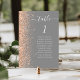 Det moderna kortet för bordsnummer i bröllop som är lämnat kant i eleganten har en persikofaux gräns. Ord "bord" visas i vitt handskriftsskript på grått-bakgrund. Lägg till namnen för de gäster som tilldelats varje bord.