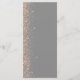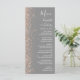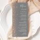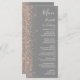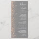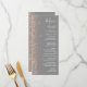 Den moderna bröllop-menyn på den lämnat kant i eleganten har en design för persikofaux glitter. Anpassadet kombinerar vit handskrift, tryckplåt och kursivt typsnitt på en grått-bakgrund. Baksidan har en dammig blå och persikofärgad utformning av glitter.