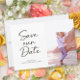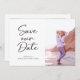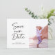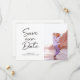 Snyggt och roligt bröllop spara datum-fotokort med ett sött penselskript. Lägg till foton både på kortets framsida och baksida.