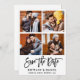 Modern penselskript Spara datum 4 Photo Couple Förlovning annonskort