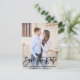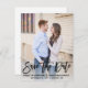Användan sparar porträtt-fotot datumkorten med modernt penselskript för att informera dina gäster om att spärra av ditt bröllop-datum i förväg. Tips! Om du behöver ändra ordalydelsen som finns i skriptteckensnittet kan du gå till avsnittet "Anpassa den här mallen" och sedan klicka på "Anpassa ytterligare" i grund. Du kan radera vilken text som helst som du vill använda i bilder och lägga till en egen text i ställe med hjälp av knappen "Lägg till text". Se till att checka ut vårt stora urval av foton spara datumkort, vykort och magneter genom att bläddra i vår Bild Spara datumsamling!