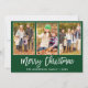 Modern Penselskript Grönt 3 Photo Family Photo God jul Helgdag Card. Vattenfärgsfärgad Vintage Red Lastbil med Julgran.