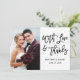 Modern penselskript med Kärlek och tack Bröllop Photo tackekort - vitt