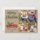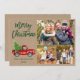 Modern Grönt Push Script Watercolor Vintage Red Lastbil med Julgran - God jul Family 3 Photo Kraft Card