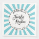 Planera nästa familjeåterförening med anpassningsbar-servetter, pappert tallrikar och andra produkter med ett modernt penselskriptteckensnitt och rand som kan ändras till valfritt färg. Här visas blått, du kan ändra färg genom att välja "anpassa" och välja en annan bakgrund färg. Redigera familjen namn och datum med din information.