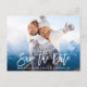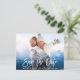 Modern penselskript Spara datum Förlovningen Ett par fotovykort - vitt skript