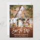 Modern Push Script Rustic Wood sparar datum 4-kort för meddelande om par Förlovningar i foto