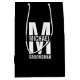 featuring personalized groomsman's monogram, name and title in white bold sans serif font style on black background.