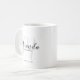 Lägg till en personlig beröring till bröllop med personlig brudar mugg. I mugg finns personlig bridesaids namn i grått, modernt typsnitt stil och monogram i det moderna typsnittet grått stil som bakgrund med rubrik och bröllop datum i grått modern sans serif font stil. Även perfekt för maid of honor, blomsterflicka, budens mamma, marskalkar, bäste man, far av bruden med mera.