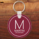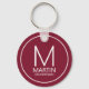 Lägg till en personlig beröring till bröllop med nyckelkedjan personlig marskalkars. Den här nyckelkedjan har personlig Groomsmans monogram och namn med titel i vitt, modernt sans serif font stil på burgundröd bakgrund. Perfekt för den bäste mannen, far av bruden och mycket mer.