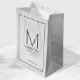 Lägg till en personlig beröring till bröllop med personlig marskalkars presentväska. Den här presentsäcken har personlig Groomsmans monogram och namn med titel och bröllop datum i grått modern sans serif font stil på vit marble-bakgrund. Perfekt för den bäste mannen, far av bruden och mycket mer.