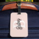 Modern Personlig Monogram och Namn Pastel Rosa Bagagebricka