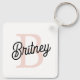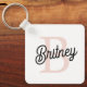 Modern Personlig Monogram och Namn Pastel Rosa Nyckelring