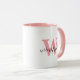Modern monogramdesign i en fet serif-typografi läggs under ett namn i ett handskrivet stil-skript. Samma design visas automatiskt på båda sidor när du anpassar den. Du kan byta rosa färg om du vill. Underbar gåva till helgdagar, kaffeevenemang, bröllopsfester och mycket annat!