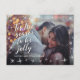 Modern Personlig-God jul-vykort med "Den här säsongen för att bli glad" och din egen bild och ditt eget meddelande med underbar handskriven typografi och snöflingor. Önska alla God jul i stil!