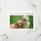 Modern förlovning och spara datum meddelande med foto från dina sällskapsdjur, "Våra människor Gifta sig" i en blandning av enkel typografi och ett snyggt, ditt första namn, bröllop datum och plats (du kan anpassa till "Mina människor" för en katt eller hund). På motsatt sida anpassar du dina datumuppgifter och lägger till namn (och även namnen för husdjur) i ett namnteckning skript.