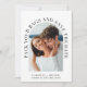 Modern målbröllop sparar datumkortet med ditt foto i ett bågat ram omgivet av "Pack Your Bags and Save the Date" i elegant text. Under fotot lägger du till ditt första namn, bröllop-datum och plats. På motsatt sida anpassar du datuminformationen i enkel typografi.