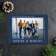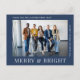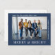 Modern blått vykort för företagsjulen som innehåller ett foto av ditt arbetslag och "Merry & Bright" i snyggtens vita typografi. Anpassa ditt företags namn och kundens/kundens tackmeddelande i enkel vit typografi. På motsatt sida lägger du till ytterligare ett tacksamhetsmeddelande från personligen.