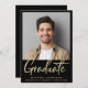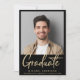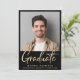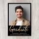 Modern svartvit studenten med gradens foto och "Student" i ett skript med contemporary fet ljus guld. Lägg till namn, klassår och skola i enkel lätt guld-typografi.
