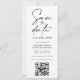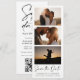Den här eleganta och enkla fotot med stil Spara datum har tre bildfack i lodrät framtill och en skannerbar QR-kod på baksidan för enkel OSA. Den handskrivna typografin och den minsta svartvita behållan är ren, med en lätt boho redaktionell vib. Perfekten för det moderna par tittar att göra deras tillkännagivande mer personligt, samtidigt som sak snyggt och funktion bibehålls. Underbar för bröllop, destinationshändelser eller chic bakgård firande.