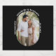 Modern bröllop/förlovningsfest-etikett för öl flaska. Designen har geometrisk ram med foto, namn, datum och plats på en svart bakgrund.