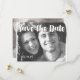 Modern Whimsical Typography Script Photo Save the Date with your Photos front and back with any linen overlay on two sides.