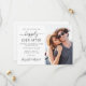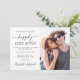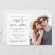 Modern bröllop spara datum-meddelande med ditt foto och "Lyckligtvis någonsin efter" i en blandning av enkel typografi och ett snyggt-skript med dekorationer. Anpassa din spara datuminformation och lägg till namnen i ett namnteckning skript. På baksidan gås med ditt namn och bröllop-datum ihop av ett hjärta.