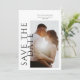 Fet typografisk brev "Spara datum" överträffar ett favoritfoto. Enkel, Elegant och modern för Bröllop spara datum. Lägg till ytterligare ett foto på baksidan med mer information eller speciellt meddelande till dina gäster. Om du vill ha frågor om ändringar i anpassad design som gjorts av designern i oberoende kan du skicka e-post till paula@labellarue.com INNAN du anpassar eller ställen en beställning. >Plats för tabell>