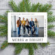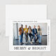 Minimalt modernt julkort för ditt företag med ett foto av ditt företagslag och "Merry & Bright" i snyggtens typografi. Anpassa ditt företags namn och kundens/kundens tackmeddelande i enkel typografi.